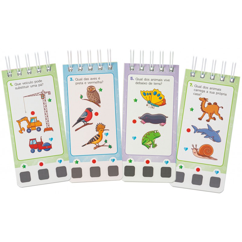 As crianças testam os seus conhecimentos e verificam se a sua resposta está certa, ao friccionarem o quadrado preto.